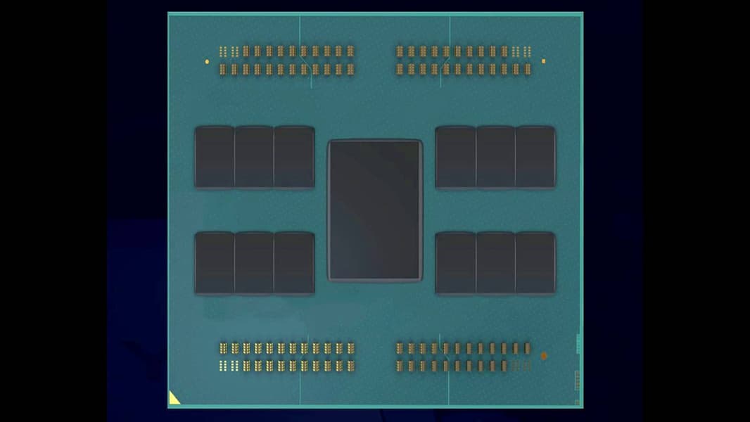 На коротком тизерном видео можно видеть сам процессор без крышки (3D-модель), где хорошо видна конфигурация с 12 процессорными чиплетами. Как мы знаем, каждый содержит по 8 ядер, то есть суммарно их будет 96. Собственно, так говорили все слухи и утечки, да и сама AMD это уже подтверждала.