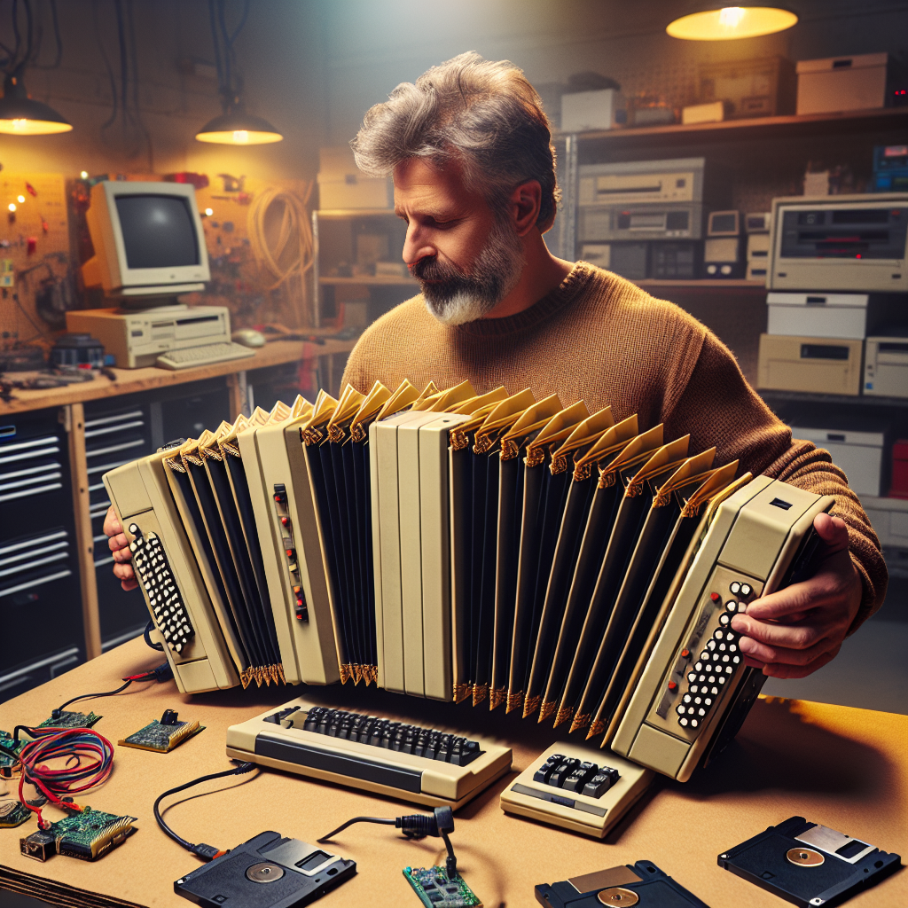 Инженер и автор YouTube-канала Линус Окессон из Швеции создал оригинальный аккордеон. Его клавиатуры сделаны из двух старых компьютеров Commodore 64, а меха — из дискет. Звук он воспроизводит с помощью специального ПО при нажатии кнопок. Также используется программа Qwertuoso, которая воспроизводит музыку SID на Commodore 64.
