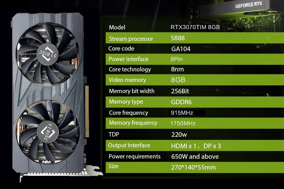 В Китае появилась очередная необычная настольная видеокарта, созданная из мобильной. Речь о модели GeForce RTX 3070 Ti.