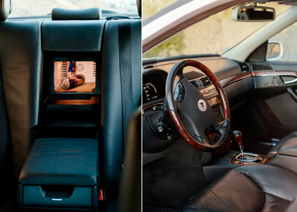 Седан белого цвета оборудовали бензиновым двигателем объёмом 5 л, который работает в паре с автоматической коробкой передач. Кроме того, автомобиль получил пневмоподвеску.