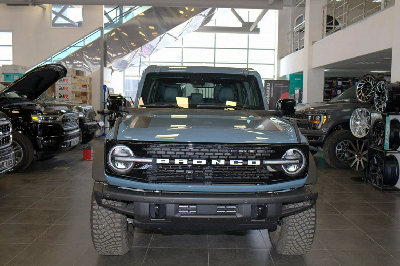 Внедорожник представлен в серо-голубом цвете и в максимальной комплектации First Edition, а с конвейера он сошёл в 2021 году. Цена такого Bronco — 135 тысяч долларов по курсу ЦБ с небольшой доплатой продавцу.