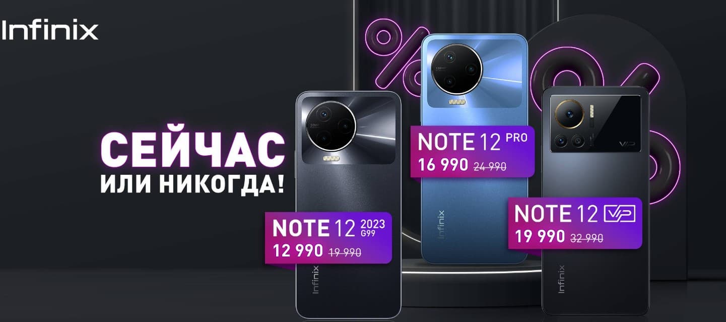 Флагманский смартфон Infinix Note 12 VIP подешевел на 40%, с 32 990 до 19 990 рублей. Он получил 120-герцевый экран и камеру разрешением 108 Мп, а полная зарядка устройства занимает всего 17 минут.