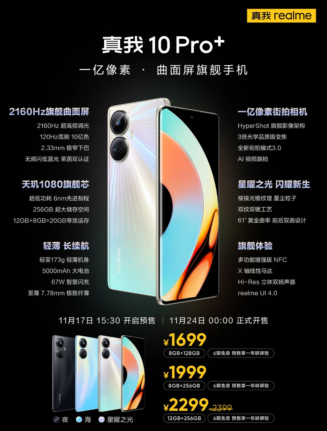 Толщина телефона — всего 7,78 мм, масса — 173 грамма. Realme 10 Pro+ оснащён чипом NFC и стереодинамиками, а в качестве интерфейса используется Realme UI 4.0. Что касается цен, то они выглядят следующим образом: 8/128 ГБ — 240 долларов, 8/256 ГБ — 280 долларов, 12/256 ГБ — 320 долларов.