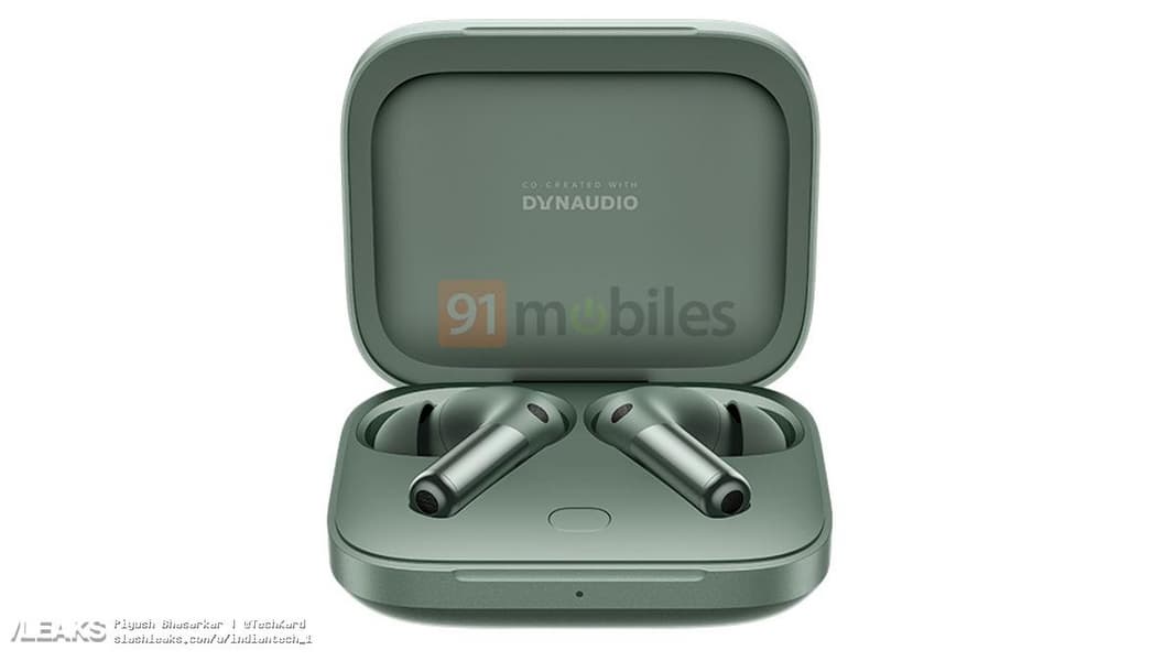 Устройство показано в зеленом, но наверняка будут и другие цвета. Расцветка, как видно, комбинированная – с глянцевой и матовой частями. Нов целом дизайн такой же, как у OnePlus Buds Pro.