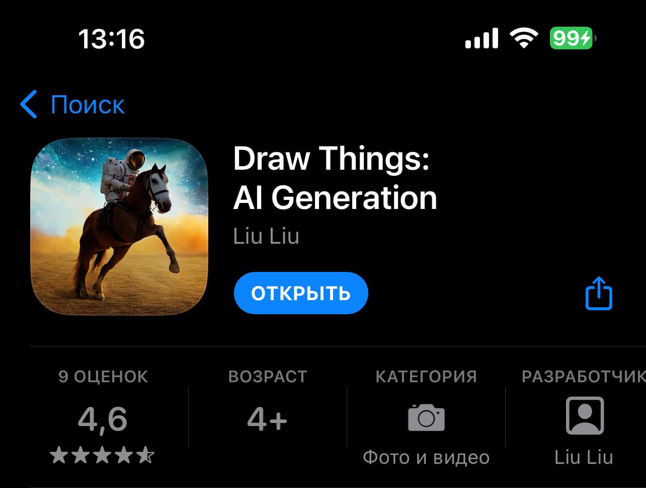Новинка называется Draw Things, и она полностью бесплатна. Нет ни рекламы, ни встроенных расширенных функций. Для работы не требуется подключение к интернету, хотя при первом запуске нужно будет скачать несколько гигабайт дополнительных данных.