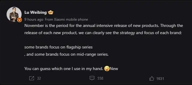 Xiaomi пока не объявила дату анонса, но глава Xiaomi Group China Лу Вейбинг (Lu Weibing) в сообщении в социальной сети Weibo намекнул, что премьера некого флагманского устройства состоится до конца ноября. Что это за флагманы, представить не трудно. Таким образом, премьеру логично ждать на следующей неделе.