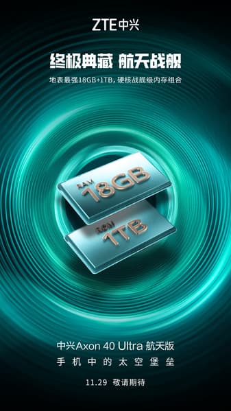 Презентация ZTE Axon 40 Ultra Aerospace Edition ожидается 29 ноября.