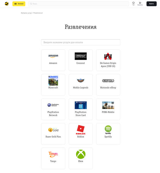 На сайте «Билайн» в разделе «Оплата услуг» в секции «Развлечения» со счёта мобильного телефона теперь можно оплатить подписку, пополнить счёт и совершать покупки в Sony PlayStation Network, Xbox, Nintendo eShop, Amazon, Spotify, совершать внутриигровые покупки в различных играх вроде Minecraft и PUBG Mobile и так далее.