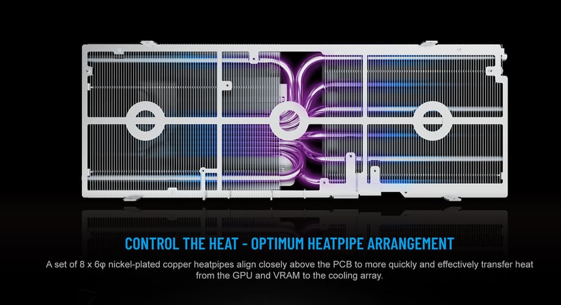 Печатная плата видеокарт линейки насчитывает 14 слоев, подсистема питания – 20 фазная. Компания не раскрыла частоты. Вряд ли они будут сильно отличаться от референсных, однако небольшой разгон (для которого не требуется третий разъем дополнительного питания) возможен.