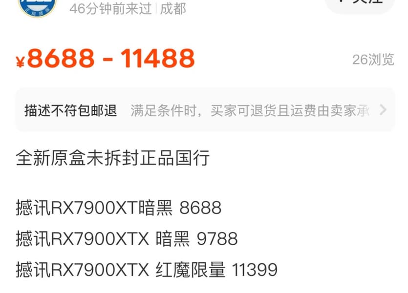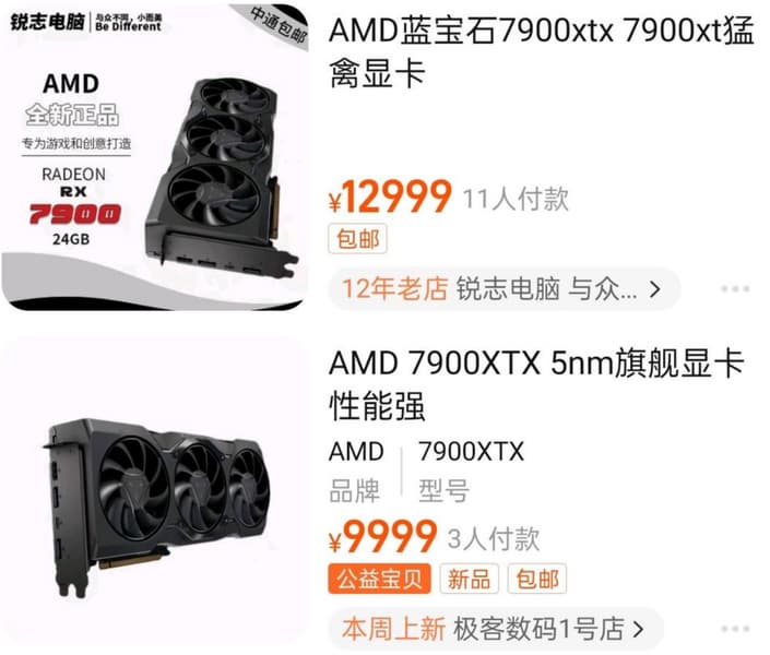 Но и это не предел: в другом магазине Radeon RX 7900 XTX предлагают за 12 999 юаней (1850 долларов), а Radeon 7900 XT – за 8999 юаней (1425 долларов).
