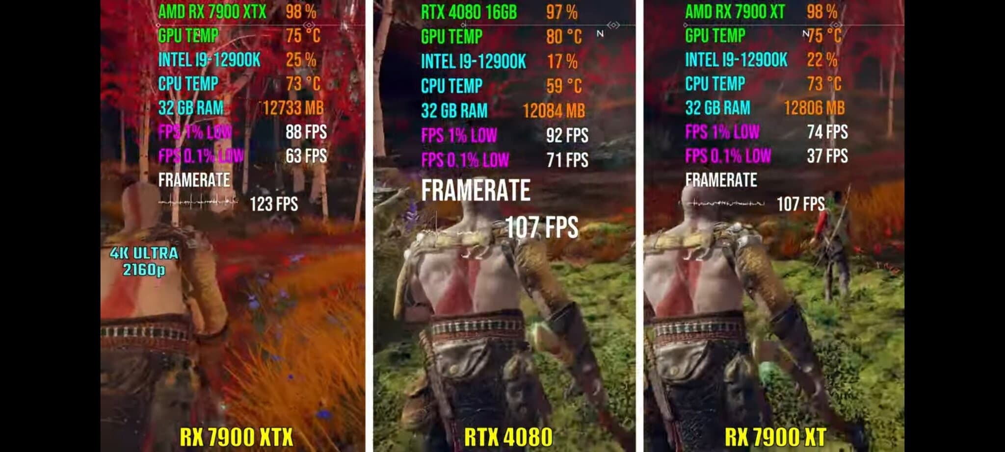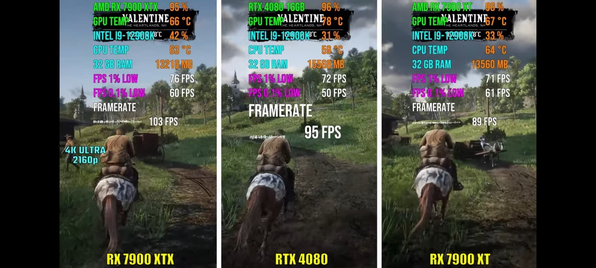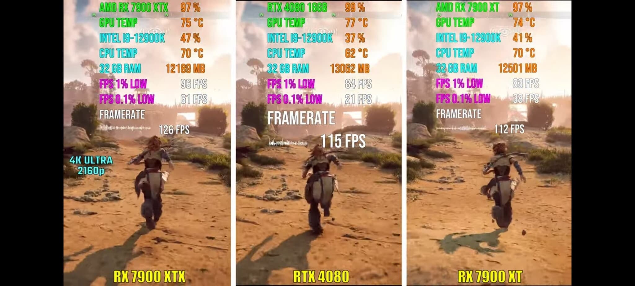 Что касается RX 7900 XTX, она была ощутимо быстрее везде, хотя в паре игр разрыв был невелик.