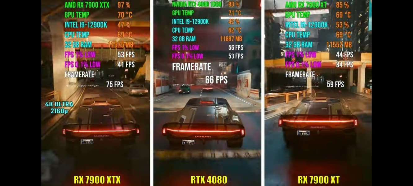 То есть RTX 4090, безусловно, недостижима. Это безоговорочно самая производительная видеокарта на рынке, вероятно, вообще в любой игре. Да и RTX 4080 в среднем отстаёт от RX 7900 XTX не очень сильно, хотя и ощутимо. Однако тут стоит помнить о ценах. RX 7900 XT, которая как раз примерно равна RTX 4080, стоит на 300 долларов меньше, если ориентироваться исключительно на рекомендованные цены, а сегодняшние данные указывают, что новинки AMD вполне могут появиться в продаже примерно с такими ценами. RX 7900 XTX всё ещё дешевле RTX 4080 на 200 долларов (на 17%), но предлагает при этом в среднем на 13-15% большую производительность. В конце концов RX 7900 XTX будет отставать от RTX 4090 примерно на те же 15%, но карта Nvidia на 60% дороже!