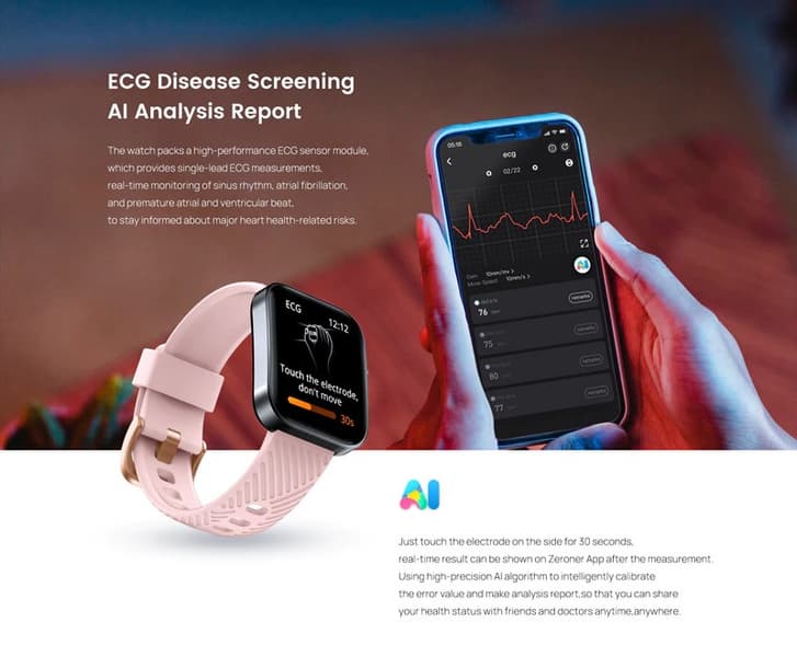 Часы также оснащены датчиком ЧСС и датчиком температуры кожи, что пока встречается редко, а уж тем более в этом ценовом сегменте. Конечно, неясно, как это будет работать при такой цене, но это покажут первые тесты. Более того, функция определения артериального давления тут также имеется, а ещё есть пульсоксиметр.