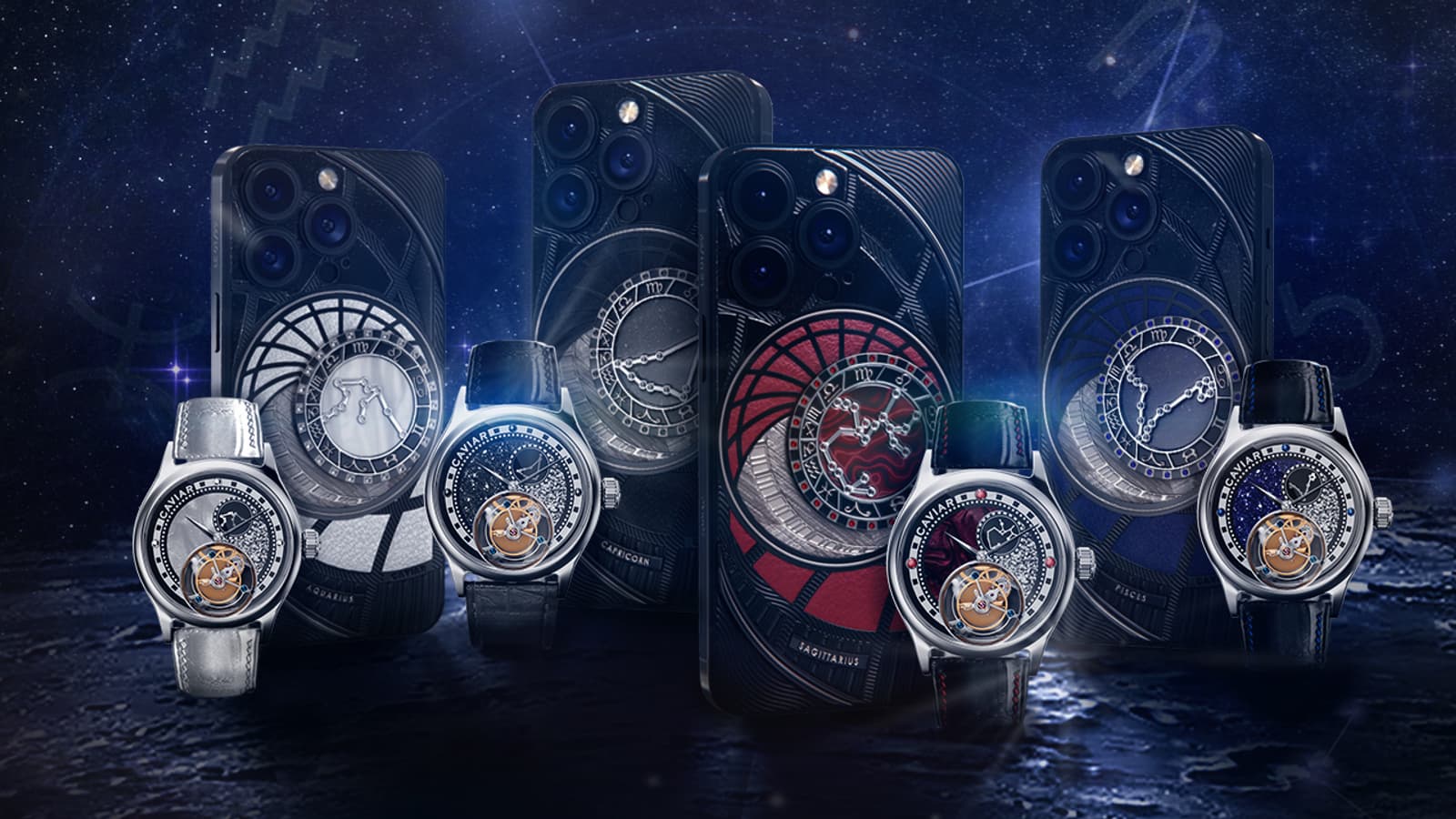Серия также была дополнена часами-скелетонами, усыпанными белыми и чёрными бриллиантами, сапфирами и рубинами. Для создания дизайна коллекции бренд нанял астрологического консультанта. Как подчёркивает пресс-служба Caviar, в случае с часами речь идёт о самостоятельной разработке бренда, а не кастомизации чужой продукции. Более того, в часах используется российский турбийон. Цены стартуют от 279 000 рублей.