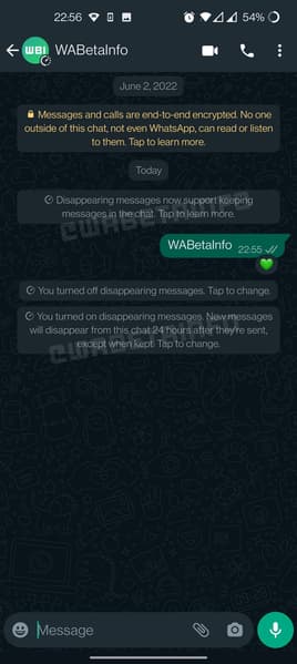 По сообщению портала WABetaInfo, в мессенджере WhatsApp вскоре может появиться функция сохранения исчезающих сообщений: такая возможность описана в бета-версии WhatsApp 2.23.1.11. Сейчас пользователь может настраивать исчезающие сообщения в чате WhatsApp, выбрав нужный промежуток времени, и тогда они исчезнут через 24 часа, 7 дней или 90 дней. Новая функция, которая сейчас находится в разработке, позволит сохранить такое сообщение, чтобы оно не исчезло.