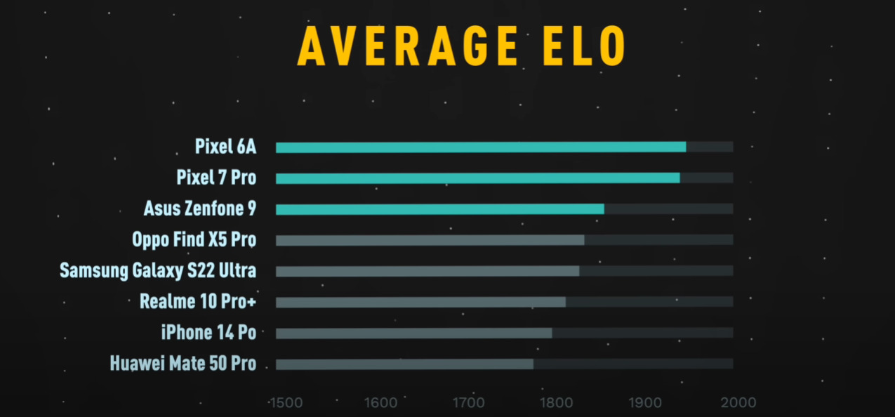 Итак, пользователи выбрали лучшим камерофоном 2022 года Pixel 6a! Недорогой аппарат Google обошёл даже своего «старшего собрата», Pixel 7 Pro, и это при том, что в Pixel 6a используется тот же датчик Sony IMX363, что и в Pixel 3/4/5. Pixel 7 Pro занял второе место, а замкнул строй лидеров Asus Zenfone 9 тоже далеко не с самым топовым датчиком. Galaxy S22 Ultra стал пятым, а iPhone 14 Pro — седьмым. В данном случае речь о местах в общем зачёте, распределённых на основе результатов в трёх категориях. В частности, Pixel 6a не стал лидером ни в одной, но дважды занял второе место и один раз третье, и это был лучший показатель среди всех аппаратов.