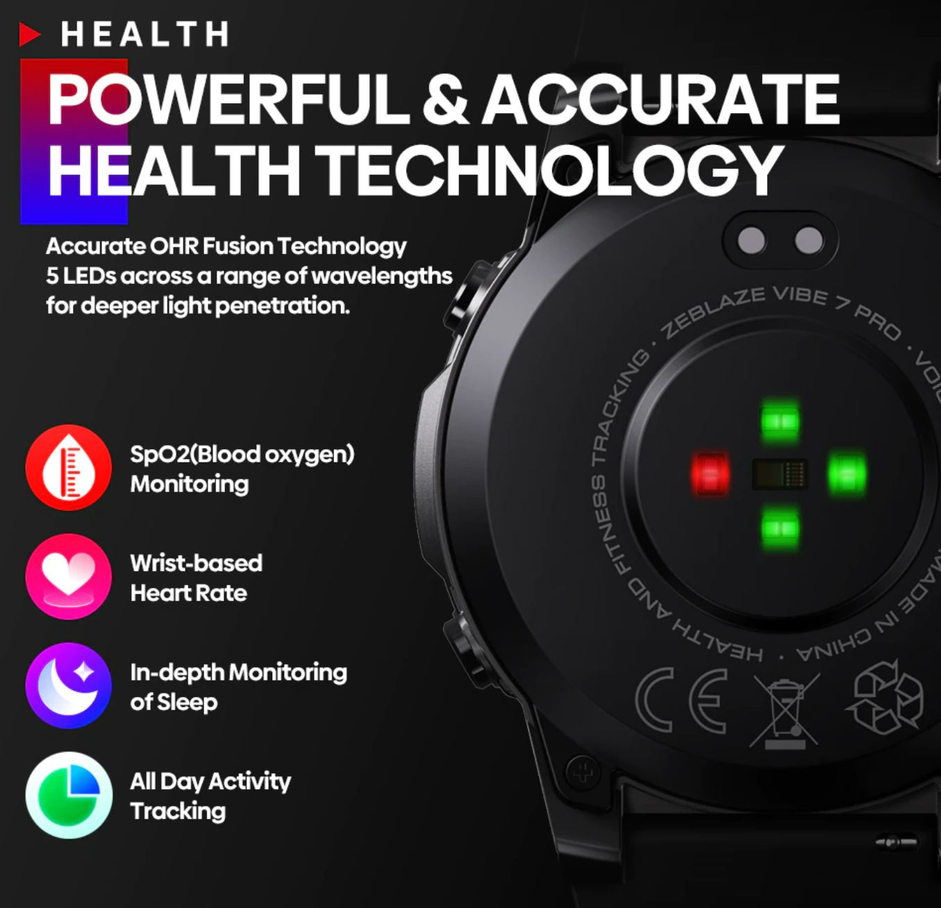 Zeblaze Vibe 7 Pro оснащены круглым экраном AMOLED с диаметром 1,43 дюйма и разрешением 466 х 466 пикселей. Устройство наделено датчиками ЧСС и SpO2, также поддерживается мониторинг сна и менструального цикла. Также поддерживается множество режимов тренировок и 100 тем оформления дисплея. Zeblaze Vibe 7 Pro – это часы-компаньон, для использования всех функций по максимуму потребуется подключение к смартфону, для чего предусмотрена связь Bluetooth 5.1.