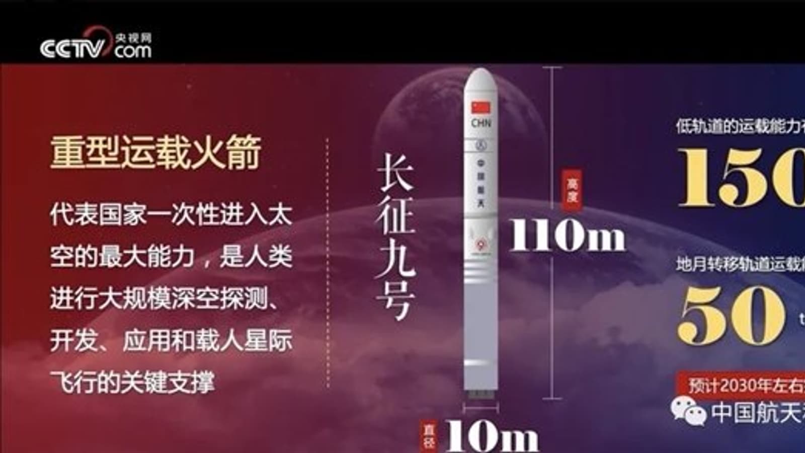 Long March 9 обеспечит выполнение амбициозной китайской лунной миссии, в рамках которой планируется построить станцию и на орбите Луны, и на лунной поверхности. Диаметр Long March 9 составит 10,5 м, высота – 110 метров. Она сможет выводить до 150 тонн полезной нагрузки на низкую околоземную орбиту и до 50 тонн – на окололунную орбиту.
