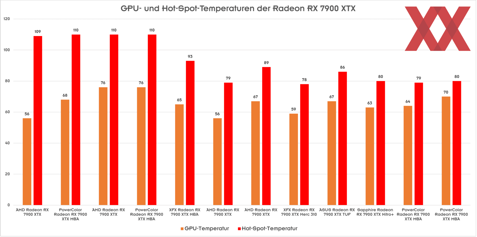 Некоторые видеокарты AMD Radeon RX 7900 XTX (в основном референсные или клоны референсных) под нагрузкой (например, в играх при разрешении 4К) прилично разогреваются — температура Hot Spot, то есть самой горячей точки видеокарты, доходит до +110 °С. В общем-то, это не новость, а новость состоит в том, что AMD считает такой нагрев совершенно нормальным.