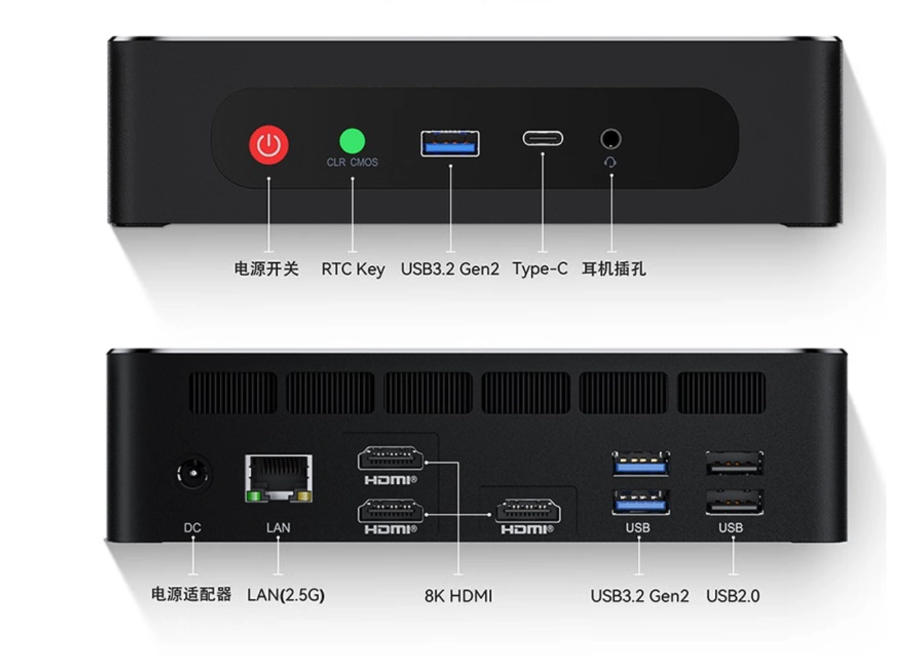 Мини-ПК GTR6 Youth Edition также оснащён процессором AMD Ryzen R9 6900HX с 8 ядрами и 16 потоками. Частота процессора может достигать 4,9 Гц, а частота графического ускорителя Radeon 680M достигает 2,4 ГГц. Однако по сравнению с GTR6 у GTR6 Youth Edition три порта HDMI вместо четырёх.