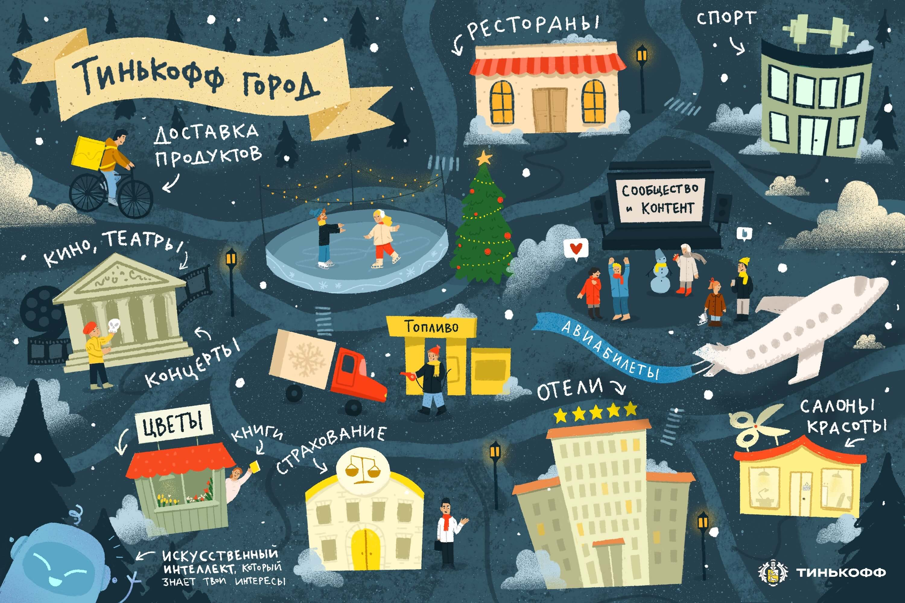 Как обещают разработчики, с помощью «Тинькофф Города» можно будет развлечься, спланировать путешествие, решить различные вопросы, связанные с городской жизнью, найти единомышленников для развлечений, узнать новости и интересные факты про события в своем городе, купить продукты и товары, заправить машину и многое другое.
