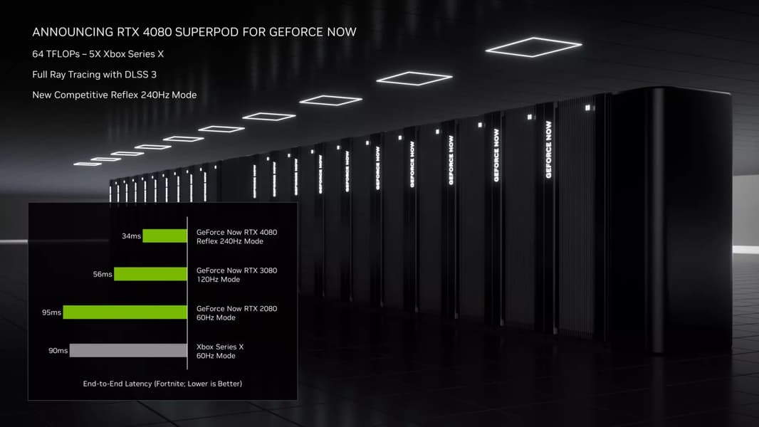 Благодаря обновлению пользователи сервиса, выбравшие топовый тариф, смогут играть в игры с частотой до 240 к/с и поддержкой DLSS 3. И всё это с активными эффектами трассировки лучей. Кроме того, поддержка Nvidia Reflex должна поспособствовать снижению задержки.