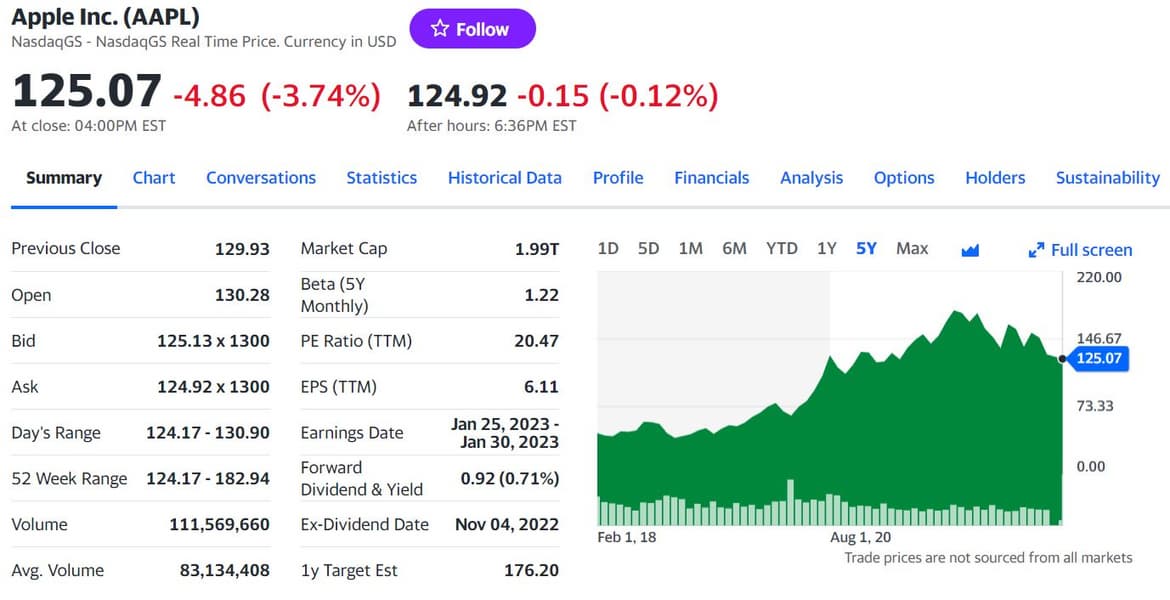 Акции Apple упали примерно на 3,7% – и этого было достаточно, чтобы капитализация компании ушла ниже отметки в 2 триллиона долларов. В последний раз акции Apple столько стоили в мае 2021 года.