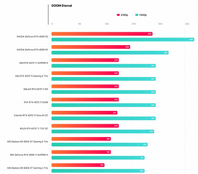 В заключении обозреватели отмечают, что GeForce RTX 4070 Ti быстрее GeForce RTX 3090 Ti примерно на 5-10%. С увеличением разрешения экрана разница уменьшается – из-за узкой 192-битной шины и всего лишь 12 ГБ собственной памяти.