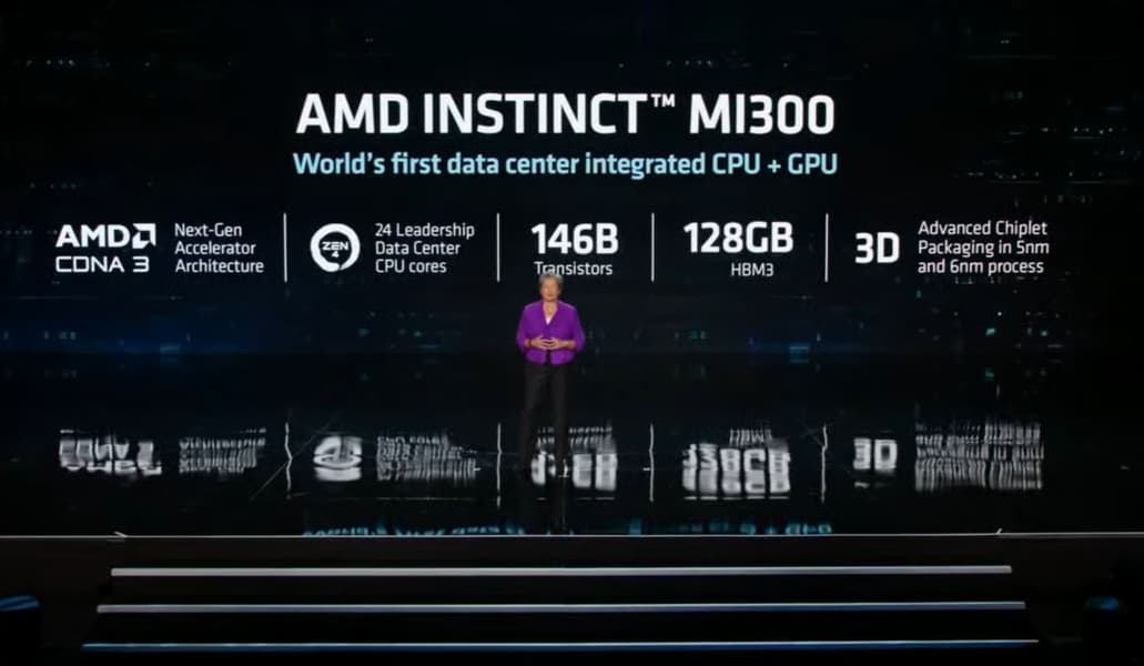 Сама компания называет его «первый в мире интегрированный CPU и GPU для ЦОД», подчеркивая тем самым гибридную сущность: в одном корпусе будет и GPU на архитектуре CDNA3, и 24-ядерный CPU на архитектуре Zen 4.