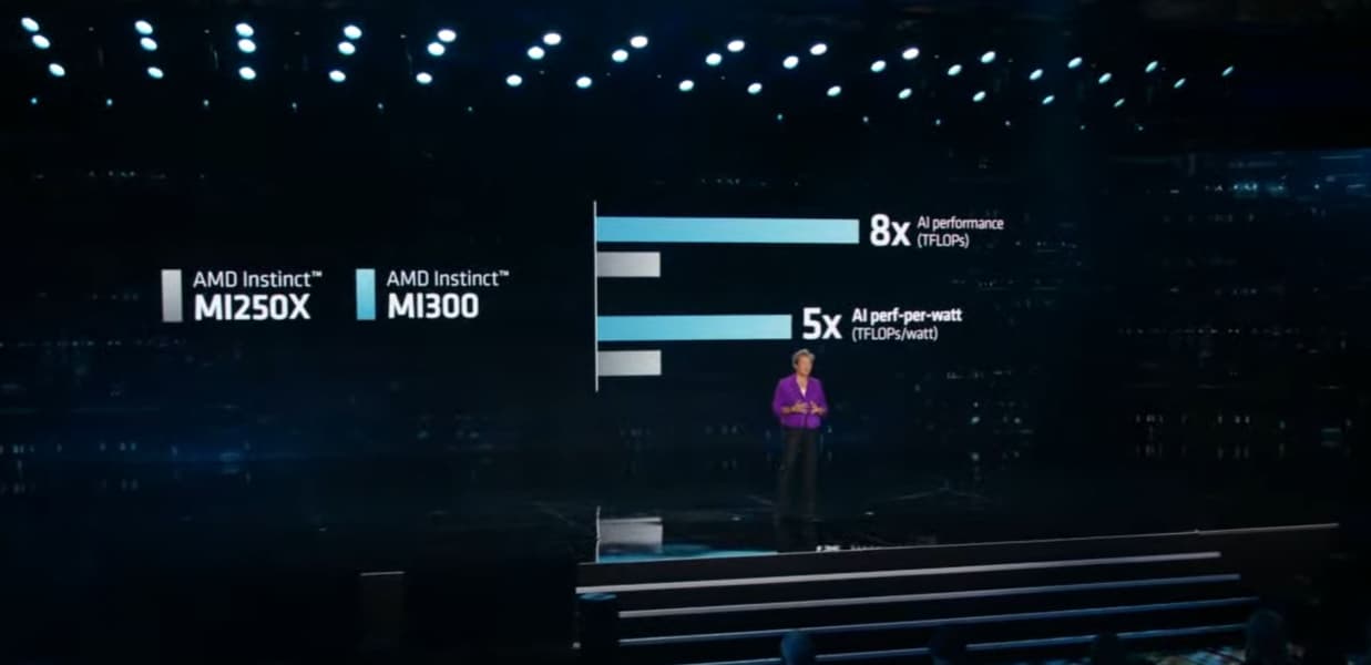 Согласно официальным данным, производительность при ускорении задач ИИ будет в 8 раз выше, а удельная производительность (в пересчете на Ватт энергии) будет в 5 раз выше, чем у Instinct MI250X. Официальная премьера Instinct MI300 состоится во второй половине текущего года.