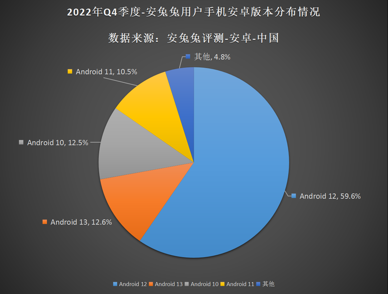 Самая популярная версия Android — Android 12 с долей 59,6%, затем идут Android 13 с 12,6%, Android 10 с 12,5% и Android 11 с 10,5%.