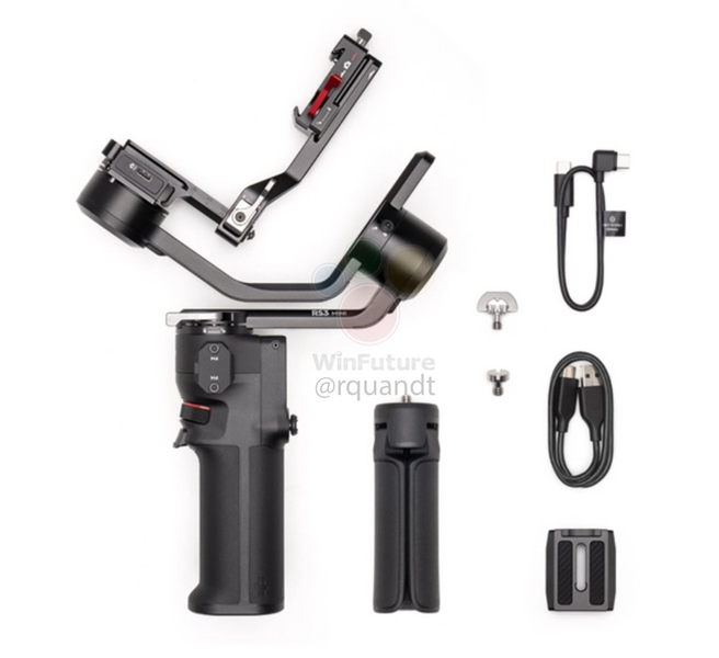Инсайдер Роланд Квандт сообщил, что DJI RS 3 Mini весит 795 граммов (масса модели RS3 составляет около 1300 граммов), и опубликовал рендеры новинки.