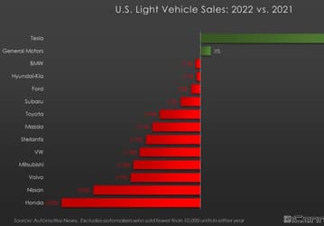 Превосходство Tesla над остальными автопроизводителями в США наглядно показали на графике