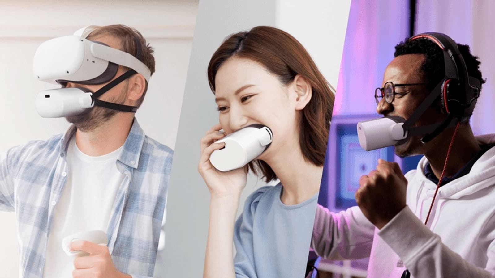 «Намордник» Mutalk оснащен поглотителем влаги, он подключается к смартфону, планшету, ПК и ноутбуку с помощью разъёма 3,5 мм. Аккумулятор не предусматривается. В целом, использование такого устройства выглядит весьма необычно. Отметим, что на CES его показали в паре с VR-гарнитурой. Выглядит это так: