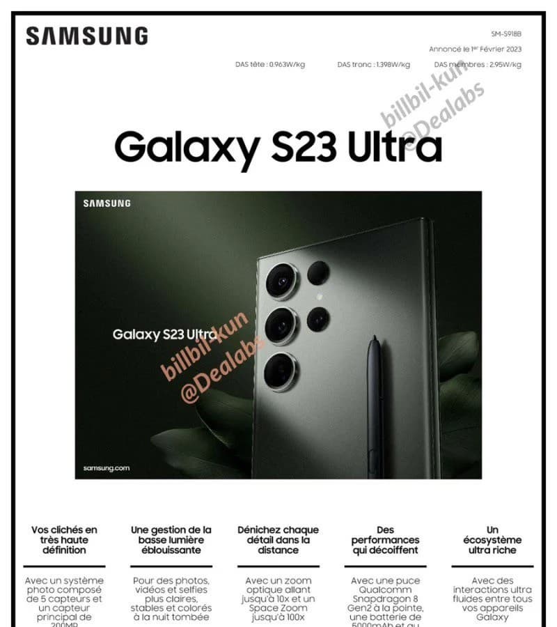 В Сеть попали рекламные изображения Samsung Galaxy S23 Ultra. Судя по всему, это материалы, которые будет использовать французское подразделение компании во время презентации или для рекламы.