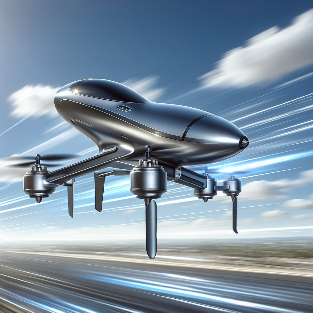 Снизу расположена небольшая подставка, которая не мешает вращаться лопастям. Дрон взлетает и зависает в воздухе, как обычный квадрокоптер, однако затем поворачивается на бок и летит с огромной скоростью.