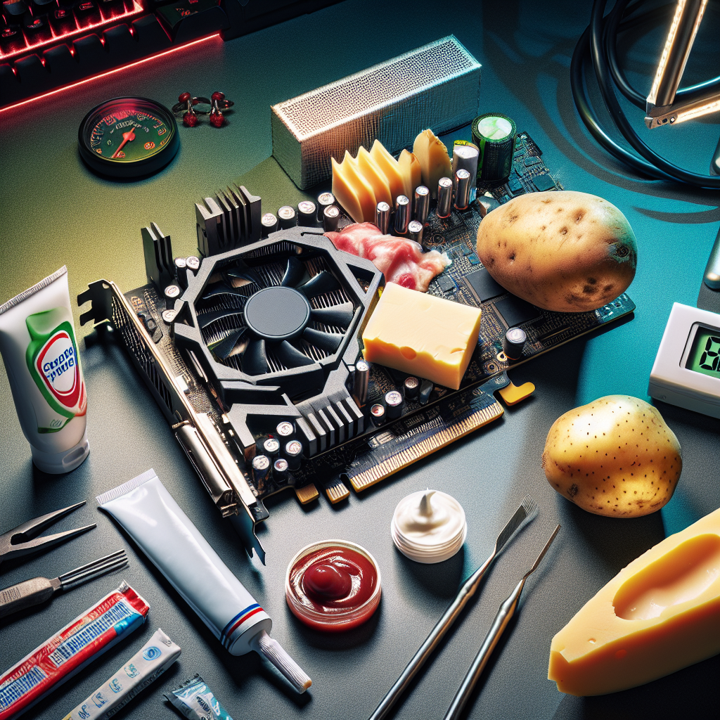 Для эксперимента была взята старая видеокарта Radeon R7 240 мощностью всего 30 Вт. А в качестве термоинтерфейса авторы решили попробовать кетчуп, крем для рук, упомянутую уже зубную пасту и даже сыр. То есть в данном случае речь о веществах, имеющих совершенно разный состав, плотность и текстуру.