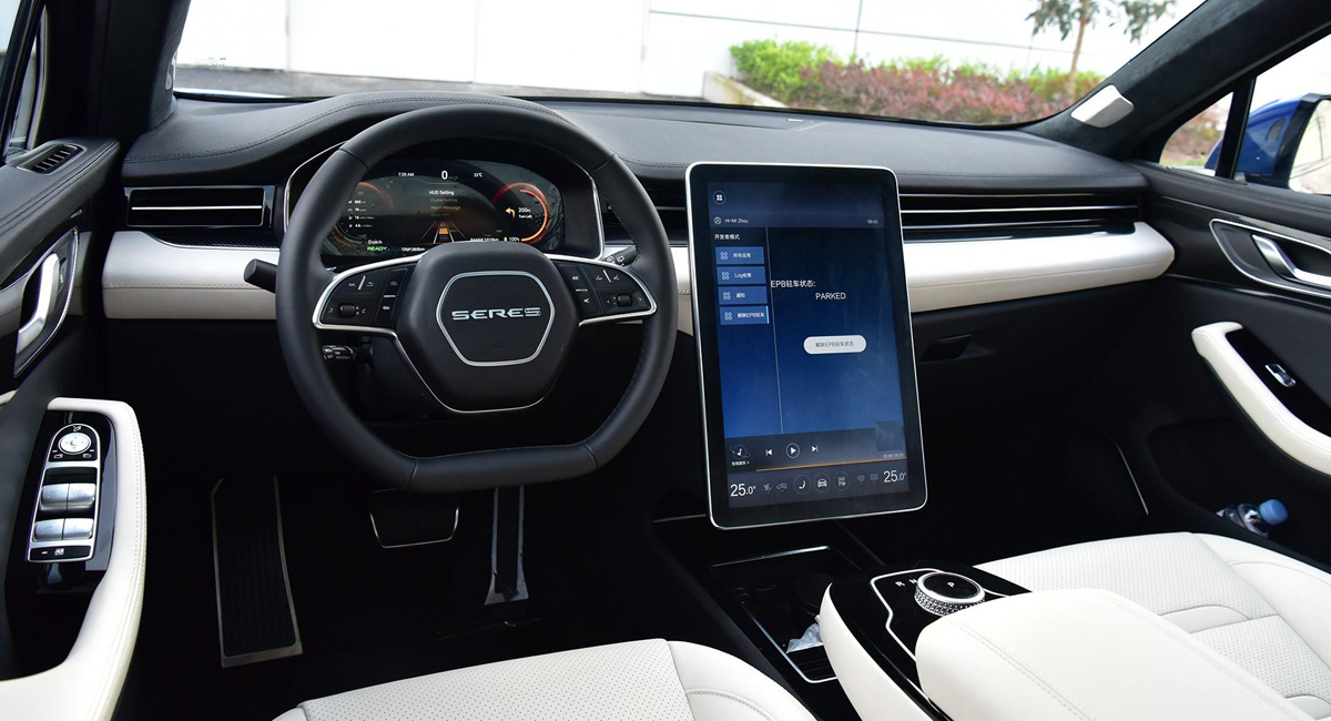 Автомобиль Seres SF5 получил проекционный дисплей на лобовом стекле, полностью светодиодные фары и задние фонари, адаптивный круиз-контроль, двухзонный климат-контроль, огромный 17-дюймовый экран мультимедийной системы, систему кругового обзора, систему мониторинга слепых зон.
