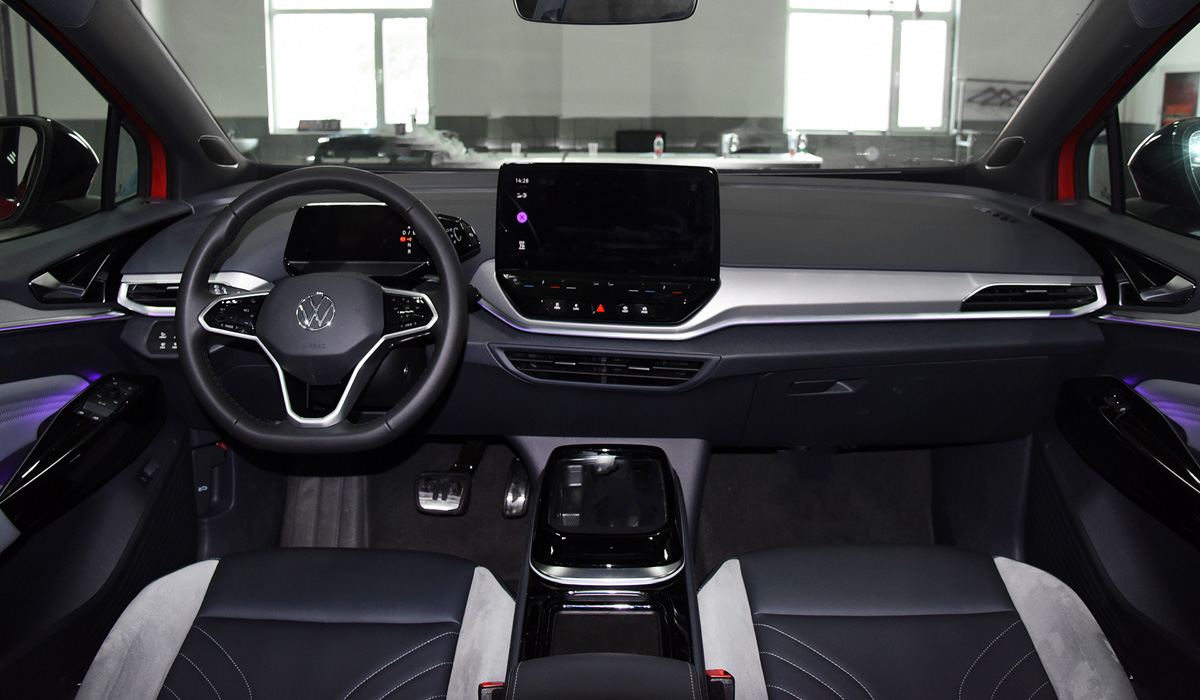 Уже в базе Volkswagen ID. 4 хорошо оснащён: есть климат- и круиз-контроль, панорамная крыша, бесключевой доступ, система активного торможения, датчики света и дождя, кожаный салон и 12-дюймовый экран на передней панели.