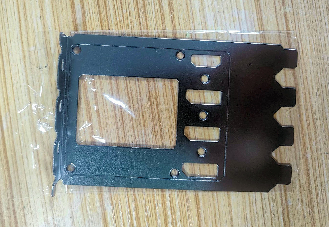 Взять, например, пластину-заглушку для слотов корпуса ПК. Она закрывает сразу четыре слота и имеет большую прорезь для выпуска горячего воздуха (правда, она явно будет перекрываться перемычкой самого корпуса). Обращает на себя внимание и расположение видеовыходов: не как обычно горизонтально в ряд, а столбиком.