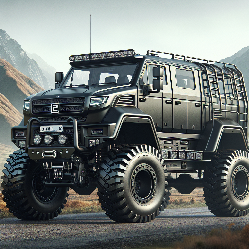 Новые фото отлично демонстрируют детали внешнего вида и интерьера этого очень необычного автомобиля. Например, обращают на себя внимание огромные зеркала размером с небольшой телевизор. Или вот очень яркий элемент — лестница над аркой заднего колеса, позволяющая забраться на крышу этого огромного автомобиля, где тоже можно разместить груз (хотя сложно представить, чтобы в таком большом авто не удалось уместить всё и всех в салоне). Ожидается, что габариты внедорожника составят 5500 х 2160 х 2155 мм.