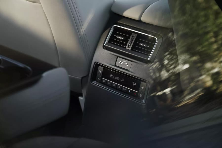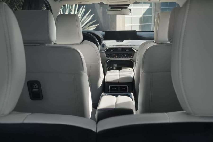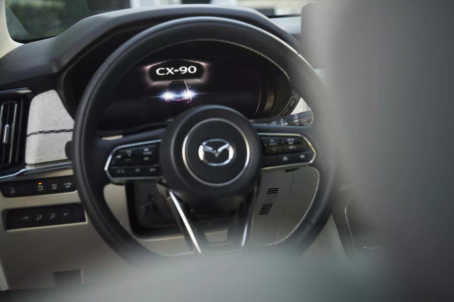 В базе у CX-90 виртуальная приборная панель, порты USB-C для всех пассажиров (в том числе и третьего ряда) и сверхширокоформатный экран медиасистемы с диагональю 10,25 дюйма. В версиях подороже установлен экран с диагональю 12,3 дюйма. В перечне опций — трёхзонный климат-контроль, акустика Bose, проекционный дисплей, панорамная крыша.