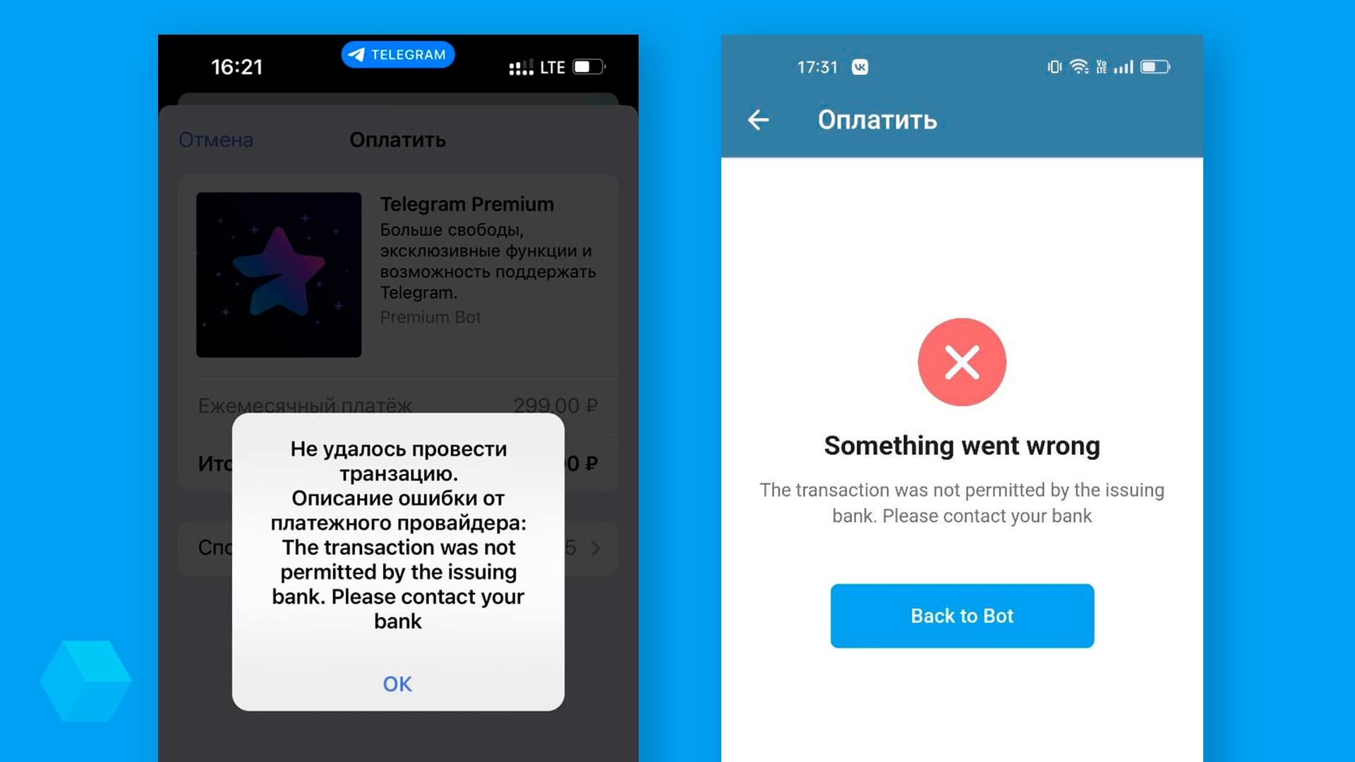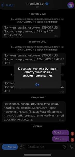 По данным канала Telegram Info, держатели российских банковских карт столкнулись с проблемой оплаты Telegram Premium. Как сообщается, официальный чат-бот Telegram @premiumbot при попытке оплаты выдаёт ошибку.