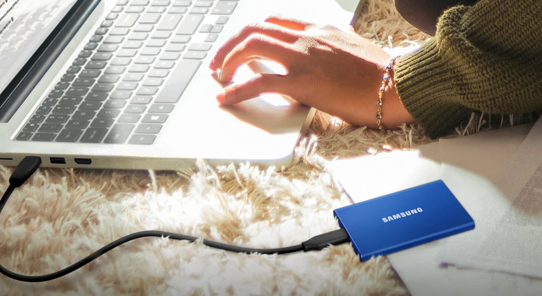 Как сообщает IT Home, в данный момент магазин JD.com существенно снизил цену на внешний твердотельный накопитель Samsung T7, оснащённый разъёмом USB-C.