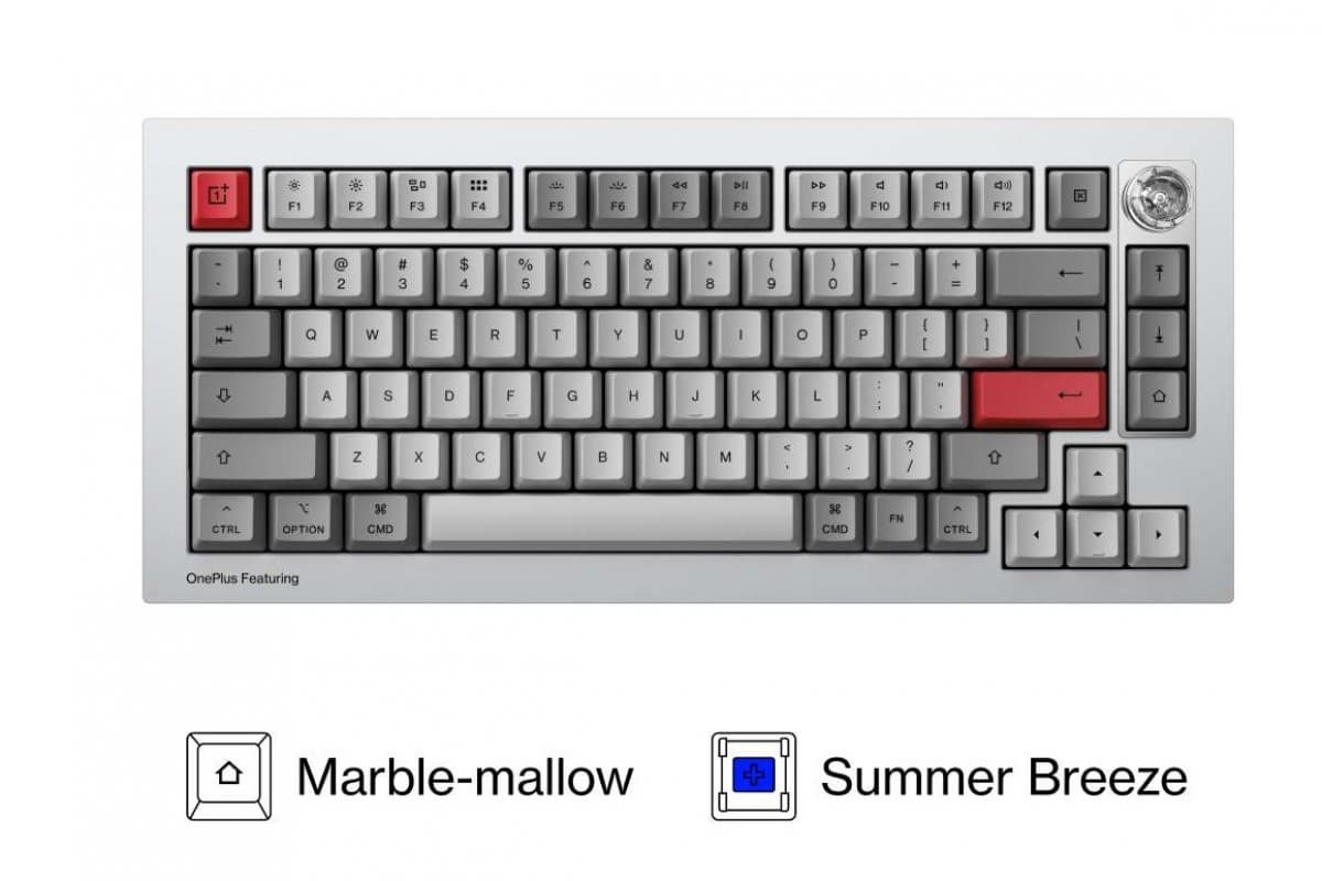 Для OnePlus Featuring Keyboard 81 Pro доступны два типа переключателей: линейные Winter Bonfire (красные) и тактильные Summer Breeze (синие). Клавиши съёмные, переключатели легко менять.