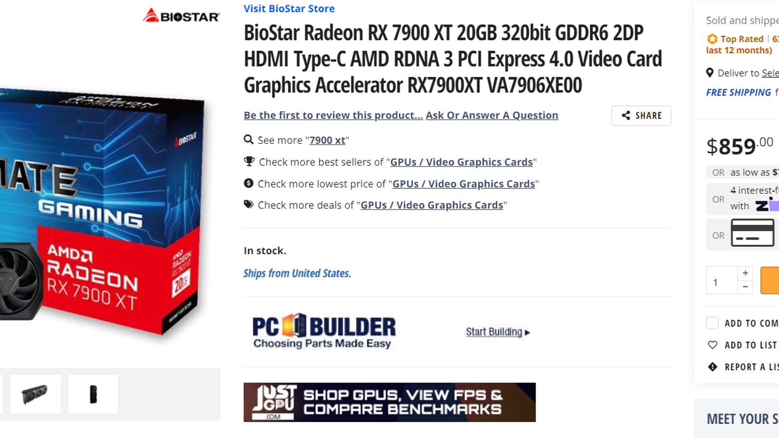 Для сравнения: на той же площадке самая дешёвая GeForce RTX 4070 Ti, с которой и конкурирует RX 7900 XT, предлагается за 820 долларов при рекомендованной цене в 800 долларов. За самую доступную RX 7900 XTX придётся отдать 1100 долларов.