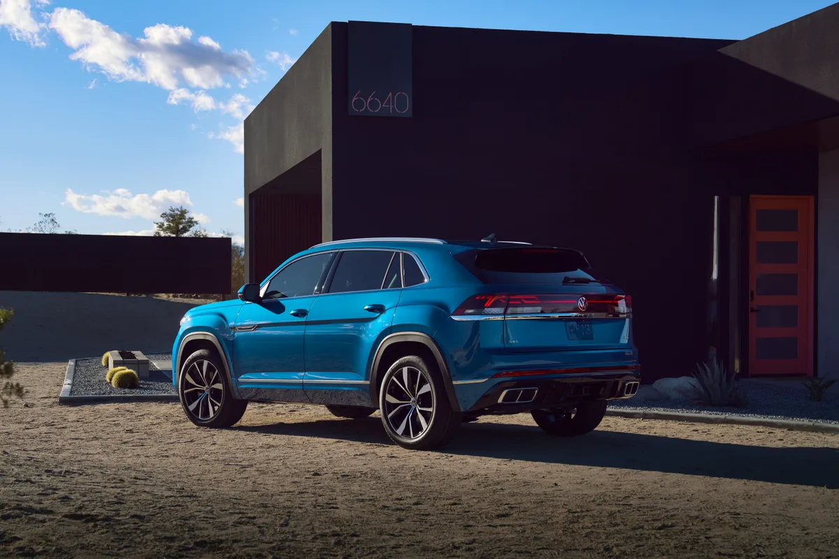 Усечённая линия крыши Cross Sport по-прежнему остаётся самым большим отличием от обычного Atlas, но в этом году купе получило глянцево-чёрную переднюю решётку и уникальный задний диффузор. В обеих конфигурациях большие задние спойлеры и новые варианты колёс размером от 18 до 20 дюймов.