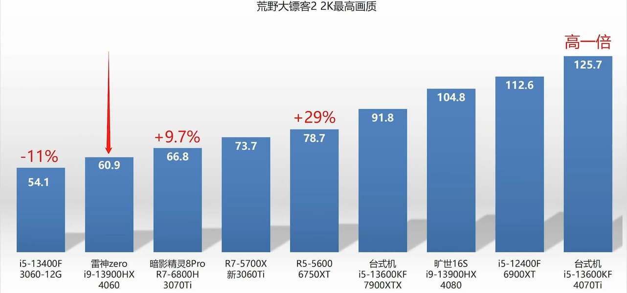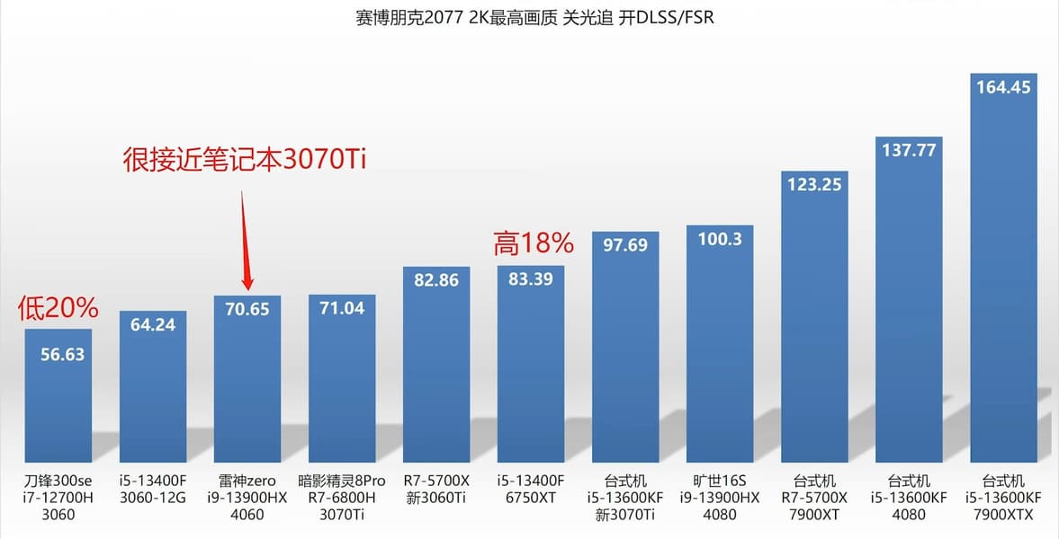 Судя по всему, в среднем новинка выступает на уровне мобильной GeForce RTX 3070 Ti Laptop. Что касается сравнения с мобильной RTX 3060 Laptop, тут всё зависит от игры. Где-то новинка быстрее всего на 10%, но немало игр, где преимущество составляет около 40% или даже больше.