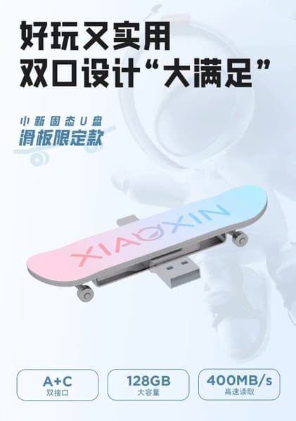 Новинка оснащена интерфейсами USB-C и USB-A и характеризуется объёмом 128 ГБ. Скорость чтения заявлена равной 400 МБ/с. В Китае за новинку просят 22 доллара, но это только на старте продаж. Позже цена вырастет до 24 долларов.