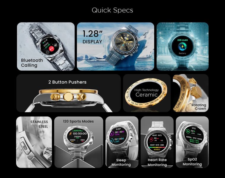 У этой модели далеко не такой качественный экран, как у Apollo, но у Blizzard есть своя изюминка. Часть корпуса этих часов выполнена из керамики, чего обычно не встречается в низшем ценовом сегменте. Судя по всему, керамическим тут является безель и, возможно, элементы управления. Остальная часть корпуса и браслет выполнены из нержавеющей стали.